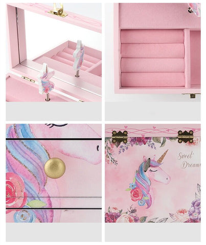 Unicorn Music Box & Little Girls Jewelry Set With Mirror